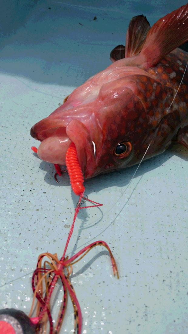 この日は一度底まで落とし、ハンドル15回転程度巻きあげまた底を取るの繰り返しで