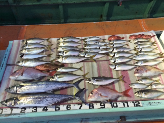 当日は残念ながらジギング・鯛カブラでは反応が悪くサワラ・鯛がポロポロしか釣れず厳しい展開・・・