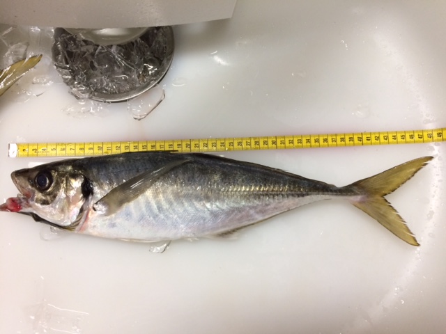 一流し目から25cmくらいのアジがぽつぽつ釣れますが、目指す大鯵とは程遠いサイズ・・・