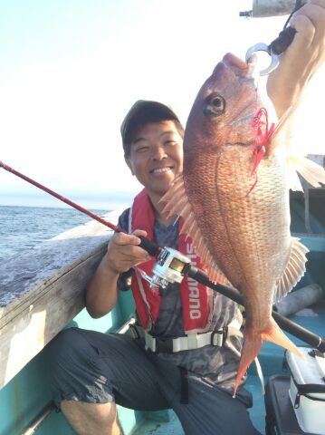朝のうちに地合で、イワシにはまだ反応が薄いとのことでタイラバからスタート!瀬戸内側の比較的水深の浅いエリアで数流しで40センチオーバーの刺身サイズをゲット!幸先は良かったものの、船中1,2枚上げたところでモーニングバイト終了・・