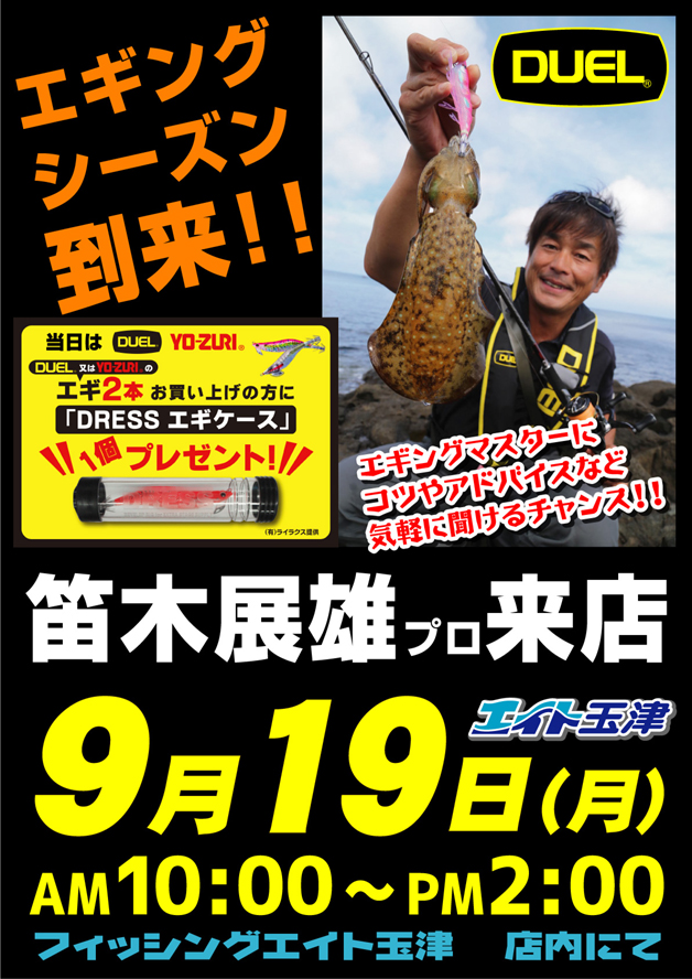 4店舗でデュエル 笛木展雄プロエギングイベントを開催致します!!