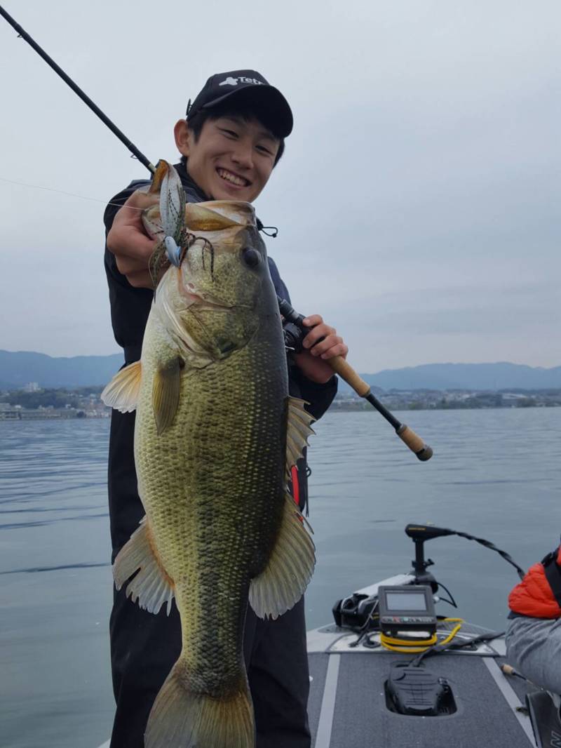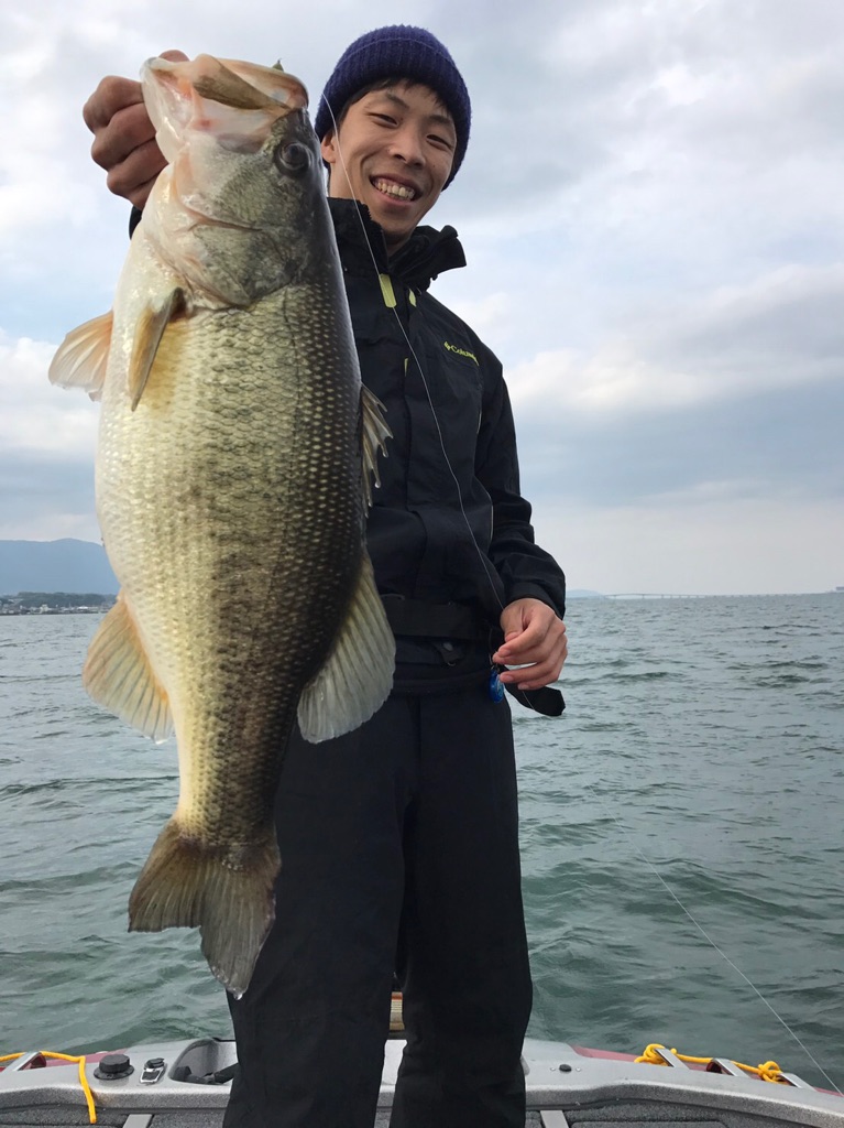 朝の1投目から瀧川が当日最大59センチをゲット!!続けて平井にも40センチ後半の良型がヒットします!ヒットルアーはいずれもスイミングマスター&パワーウィグラー。さらに54、56センチを追加!ヒットルアーはヴァレッジスイマー&パワーウィグラー。昼間はバイトも少なくゆったりと時間が流れましたが、納竿間際に八尾が57センチをキャッチし、三人ともが50UPをキャッチでき、春の琵琶湖を満喫できました。