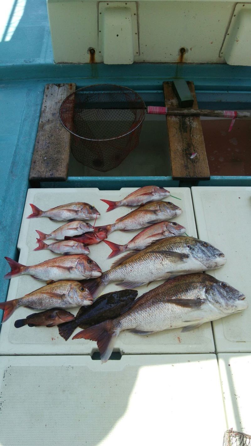 更に時間だけが過ぎ、最終ポイントで地合いが来て当たりの連発で40cmまでの鯛がポツポツとヒットして納竿となりました。