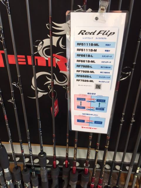 今年登場した、タイラバロッド「レッドフリップ早掛けモデル」をはじめ、ジギングロッドやロックフィッシュロッドなど、多種多様なモデルを展示しております♪