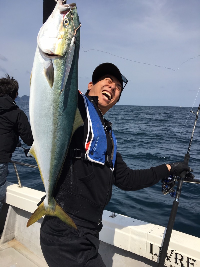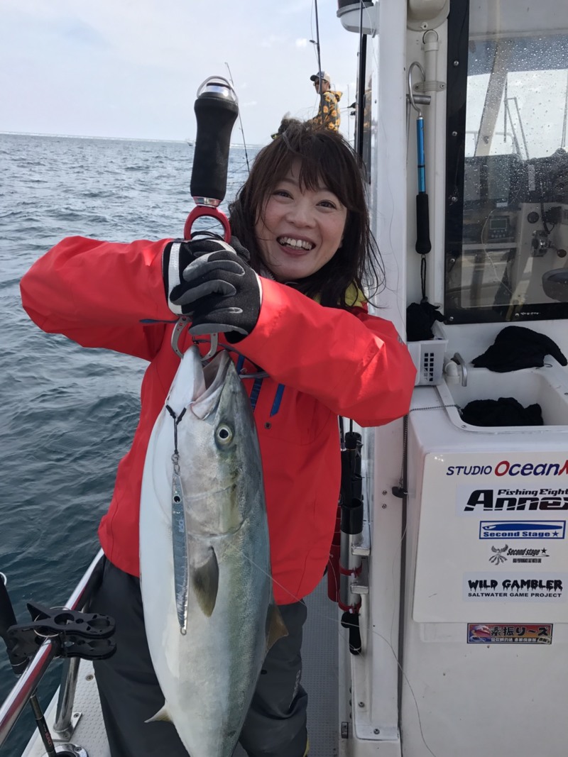 この1本目のブリも、ハマチかと思うほど楽に上がってきてビックリ!!ちなみに2本目の8kgクラスも難なくランディング。良い意味で「サイズを読み違えるロッド」に仕上がってます!!ご予約はイチバンエイトグループ全店で!!(笑)