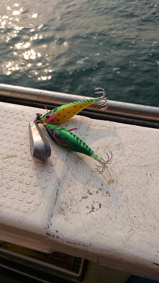当日のポイントは東二見で水深は7~14mで底は砂地が多く底にワカメが生えているのでスッテを使うとワカメだらけになるので注意!!