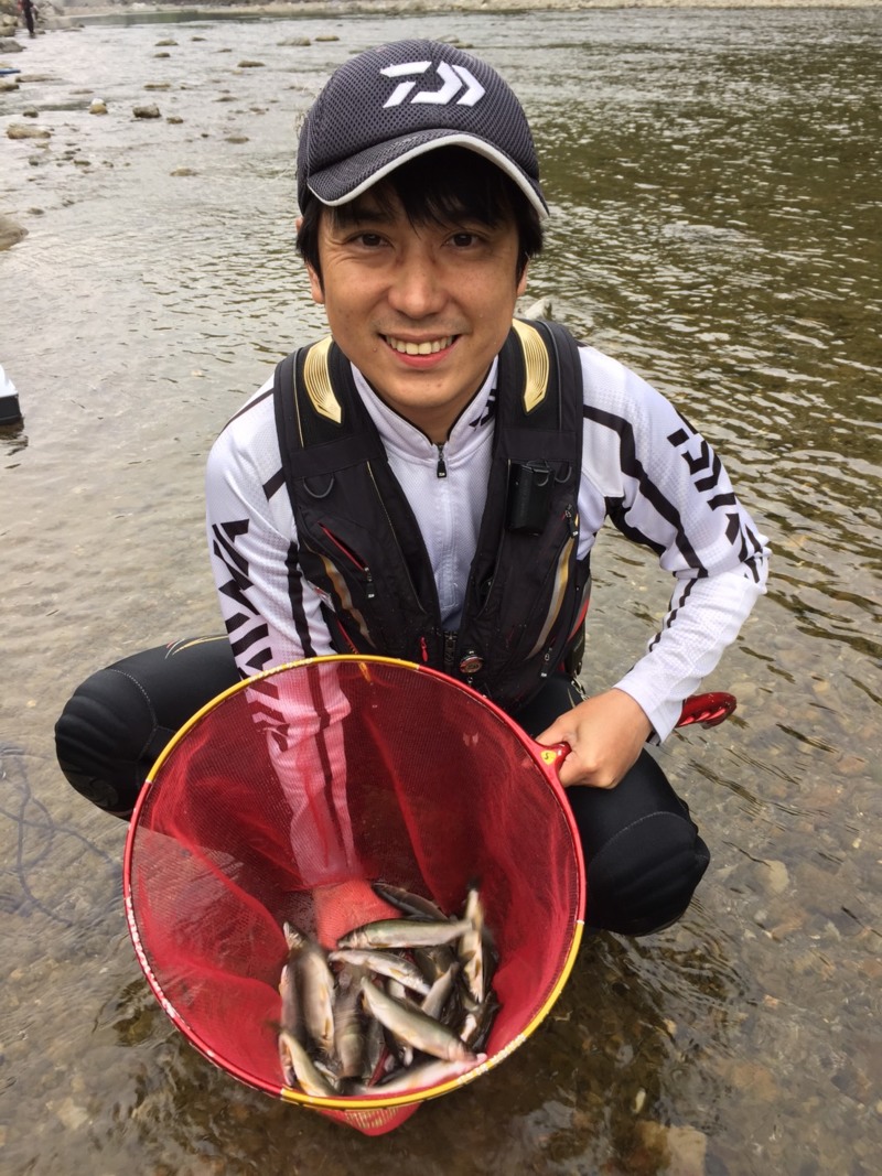 当日は足首位のチャラ瀬にしっかり鮎が付いていました!