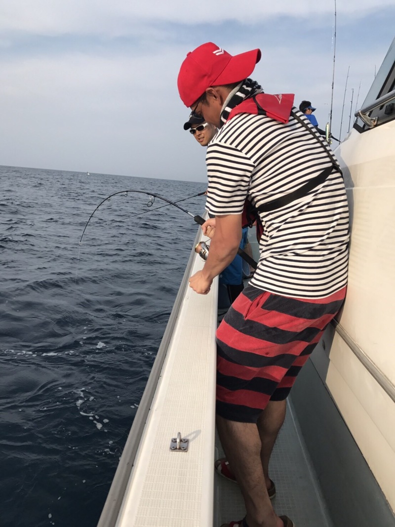 このタイミングで池上にヒットしていた魚ですが、初めはハマチと思うぐらい楽に巻いてきていたのですが、途中からドラグを引っ張り出していきます!デカイっ!!慎重にやり取りをして上がってきたのは79cmのメジロ☆