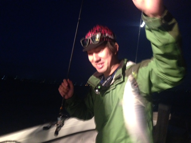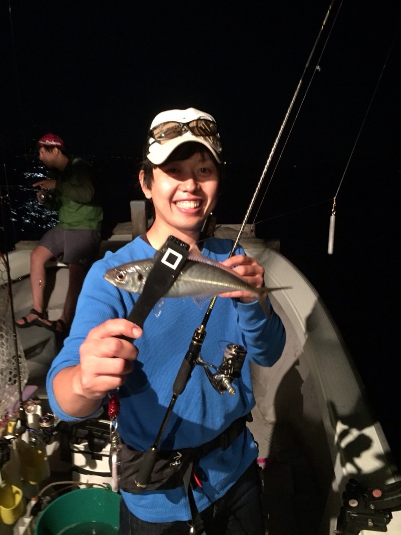 アジング初体験のスタッフ稲垣も直ぐにコツを掴んで大漁に捕獲!