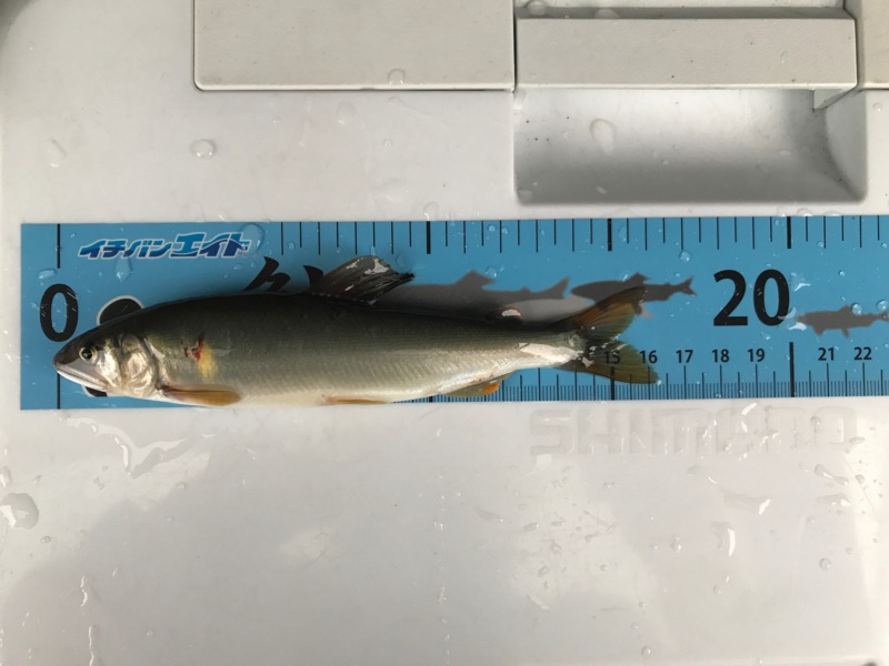 15時頃からポイントが空き始めるとその日最高サイズの黄色い鮎が掛かってくれ、そこから18時ごろまで何とか9匹釣れました。