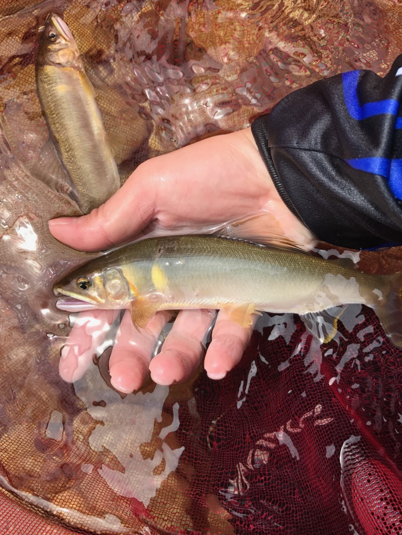 待望の目印ぶっ飛びから18cmほどの綺麗な鮎をゲット。