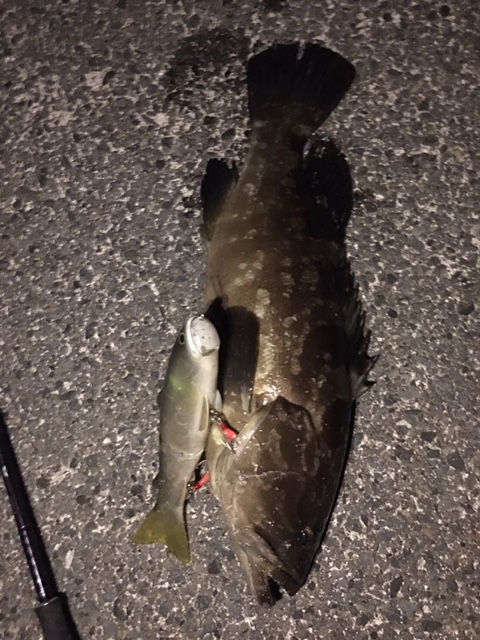 四万十ではブラックバスも釣れ、夜には一切漁港にて、スライドスイマー250で良型のクエが釣れました。
