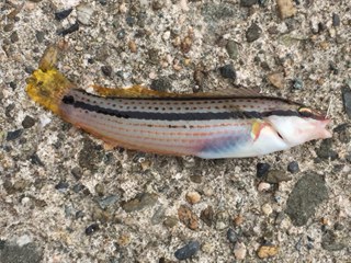 途中でライトゲームに変更し、軽量のジグヘッドにワームをつけてボトム付近でアジやガシラを数匹釣って納竿としました。