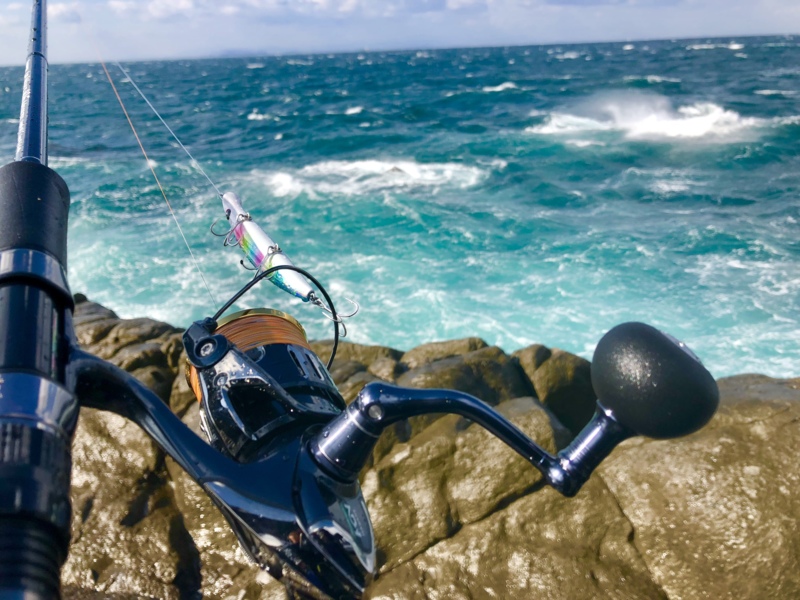 前日にも平均風速13mという爆風(写真3枚目)の中ヒラスズキ狙いで釣行してきたのですが、チャンスをものにできず1ヒット0キャッチという悔しい結果となったので、前日に引き続き南紀地磯へ釣行してきました