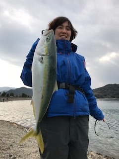 7時開始で水門付近の方がメタルジグでハマチをあげていらしたので、負けじとメタルジグを投げると20㎝程のサヨリがHIT。これがエサなら‥と試行錯誤し、お昼過ぎにBay RUF マニック155で 待望のハマチが!雨が降り出した15時までで、1人1匹ずつハマチが釣れました。