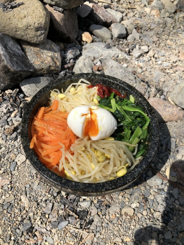 バーベキューと石焼ビビンバと釣りたてのマスの塩焼きを楽しみました。