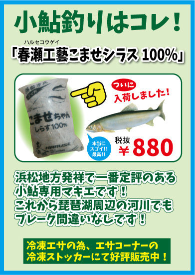 足元にいるアユの鼻先にこませを撒くと、撒いたところにうろうろするのですが、撒き餌さを勢いよくは食っていません。シラスのエサにまだ慣れていないのでしょうか。