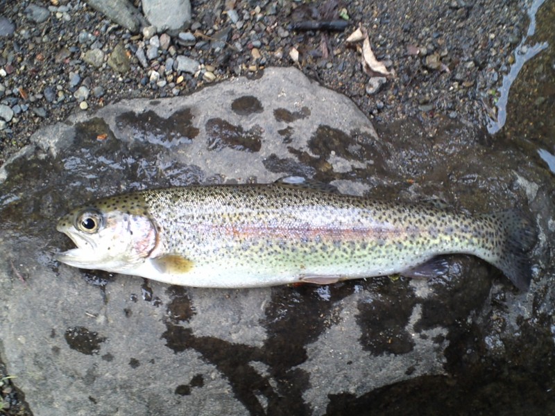 慎重に寄せて見ると、この辺りには放流されているニジマス。