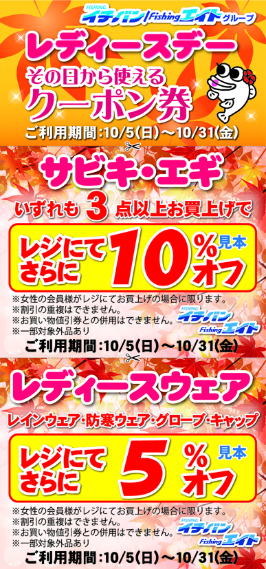 レディースデー | つり具豊富フィッシングイチバン・エイト大阪・京都の大型釣具店