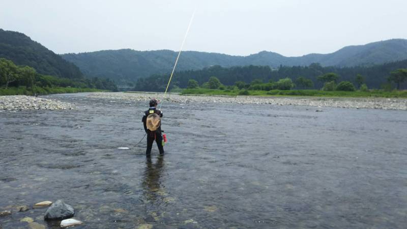 運よく天気は晴れ、絶好の鮎釣り日和です。