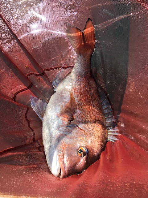 そこから勢いよくラインが出され、なんとか取り込んだ魚は、なんと58cmの綺麗なマダイでした。