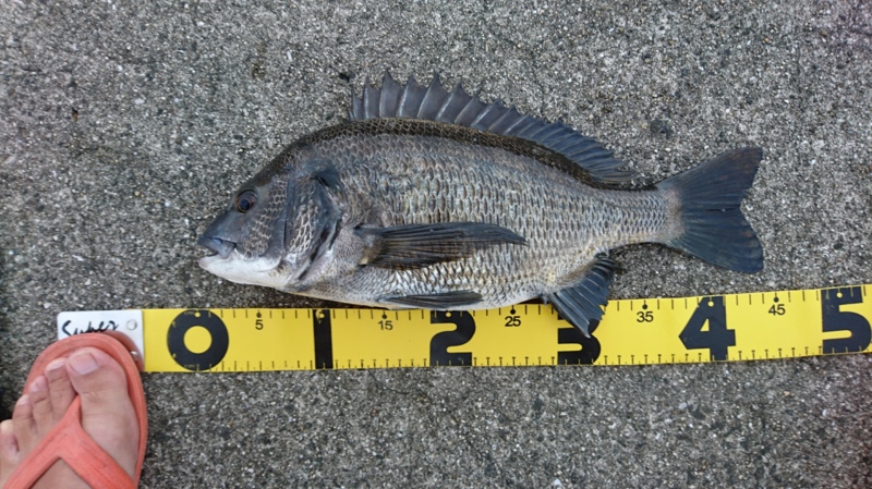 立てて続けに45cm程のチヌ。