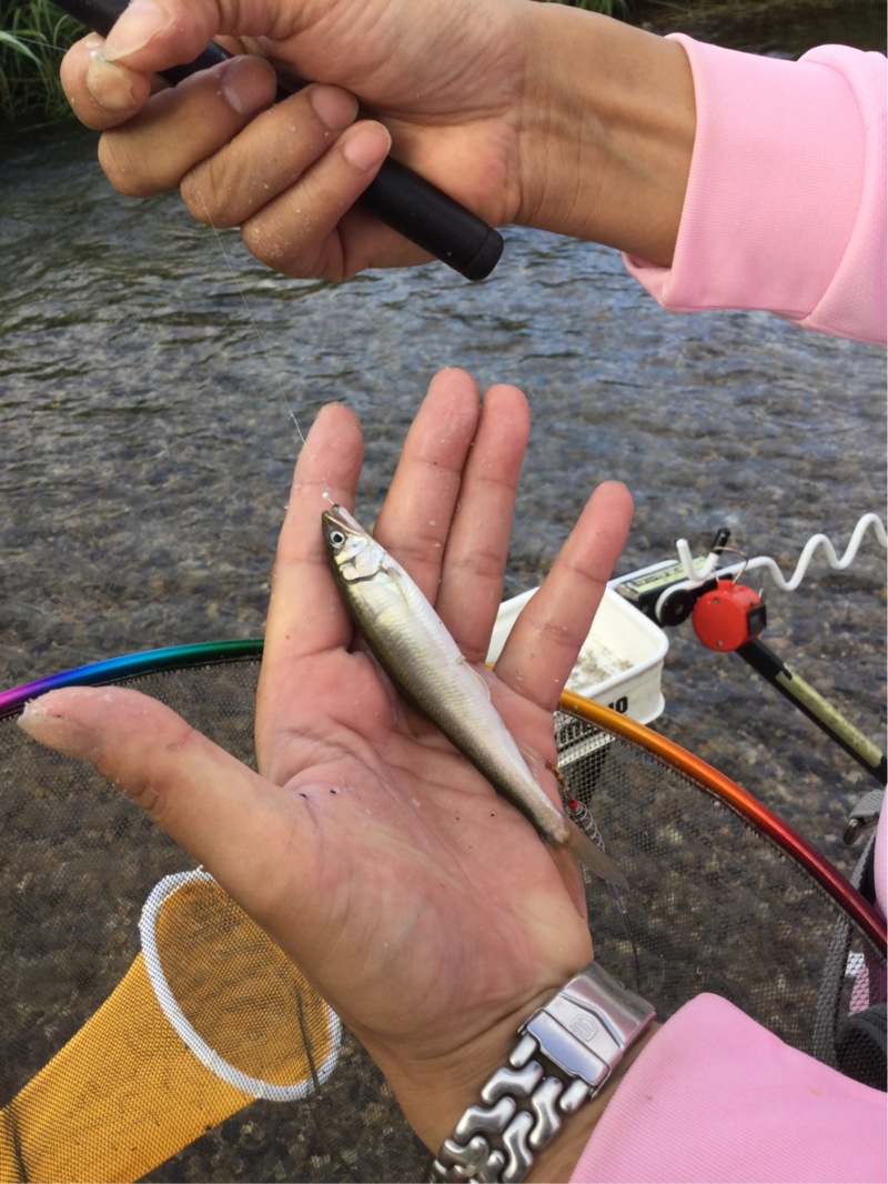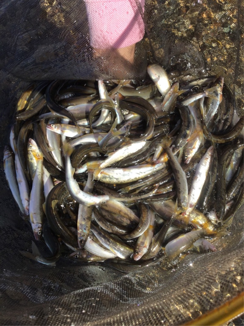 小さいのから塩焼サイズまで、黒く錆びた個体も多くかかりました。