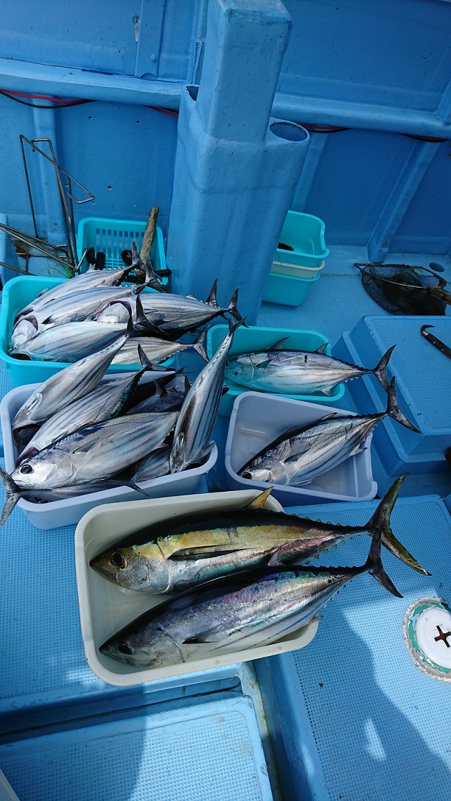 豪快なアタリがあれば、すぐにアワセ、しっかり竿をたててゴリ巻きです。この日はサイズは小さめですが、アタリが多く、存分に楽しめました。納竿前には、唯一のマグロもあがり大満足でした。