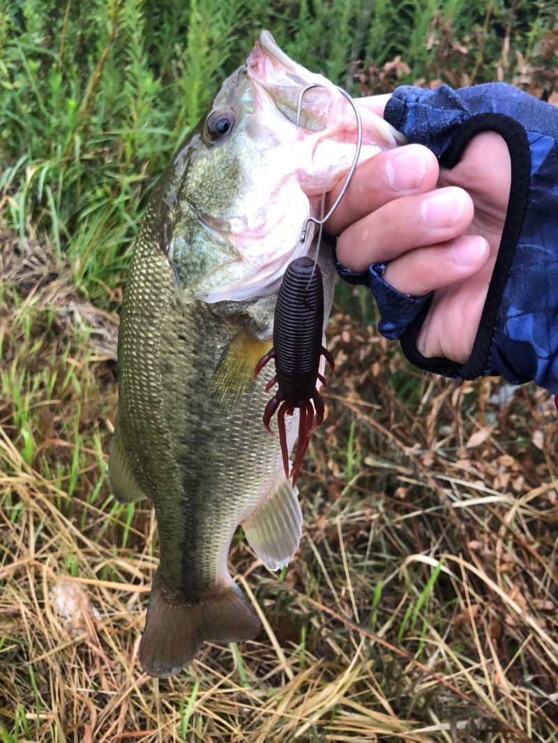 ウエイテッドフックを使用したギル系ワームのスローフォールでも良い魚が掛かりましたが抜き上げでポロリ…泣