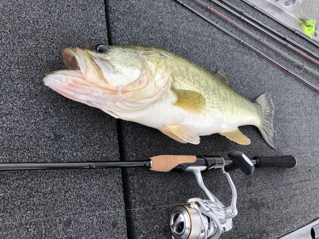 まずはスイミングジグで狙っていきますが反応が無いので、ウィードの変化でテキサスリグにローテーションすると早速レギュラーサイズがヒット~その後もポロポロ反応がありますがすっぽ抜けに悩まされる展開に・・・すっぽ抜けながらもグッドサイズをキャッチしたりと回遊に当たればバイトは多いです!