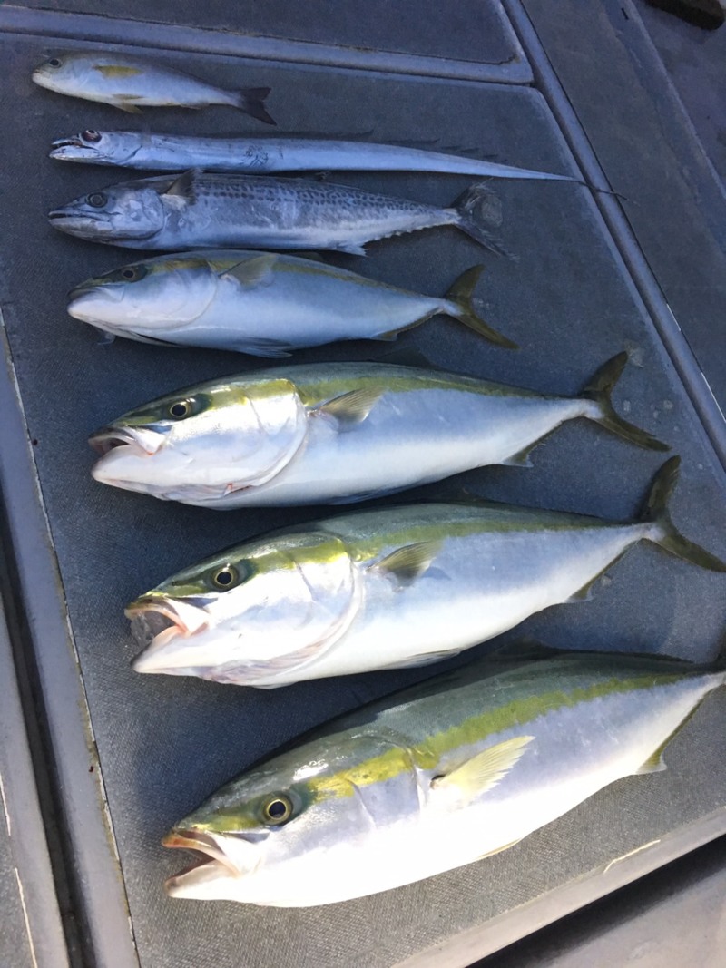 午後からは、雨も強くなり2時ごろの時合で、スタッフ長谷川がリリースサイズのチャリコ、藤田がサゴシを1本、幸田がハマチ2本をヒットさせその後は何もなく終了となりました。
