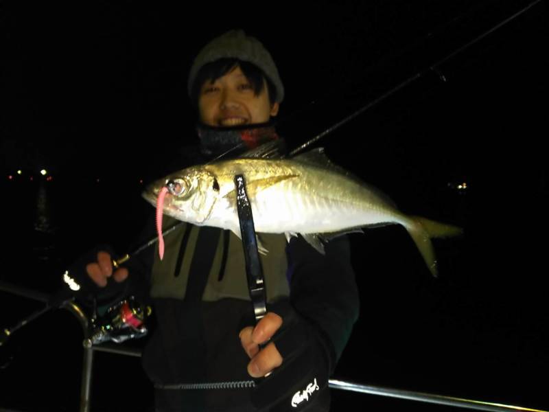 前半はプレッシャーなく、3gのジグヘッドとソリッドのキツめのカラーでアピールして尺を余裕で超えるデカアジ爆‼