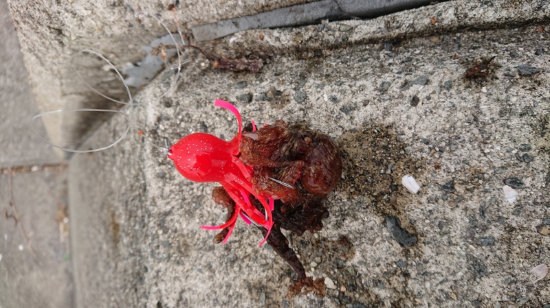 最近は、朝一番がかなり数釣れているので期待して行きましたが昼間はやはり厳しく、イマイチ反応もなく一時間程たったぐらいで初めてのタコからの反応が!