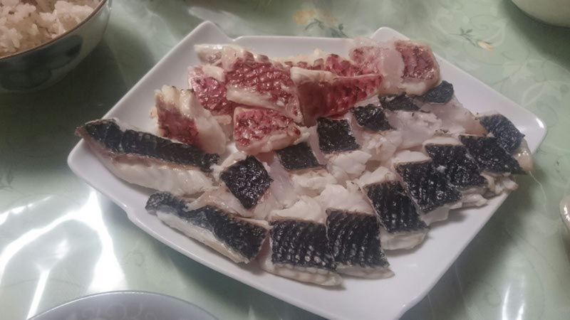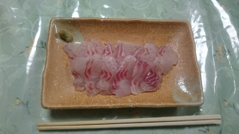 釣れたグレは自宅で刺身と叩きにして食べました。