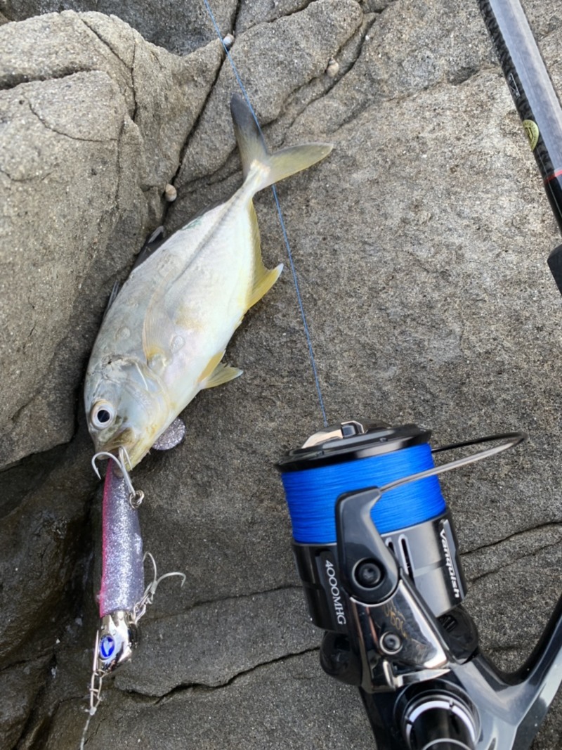 待望のドラグ音に期待しましたが見た事無いような極太サイズのダツ、。残念ながら抜き上げ寸前にラインブレイク。魚に申し訳ない事をしてしまいました。その後外道でメッキがヒット、。