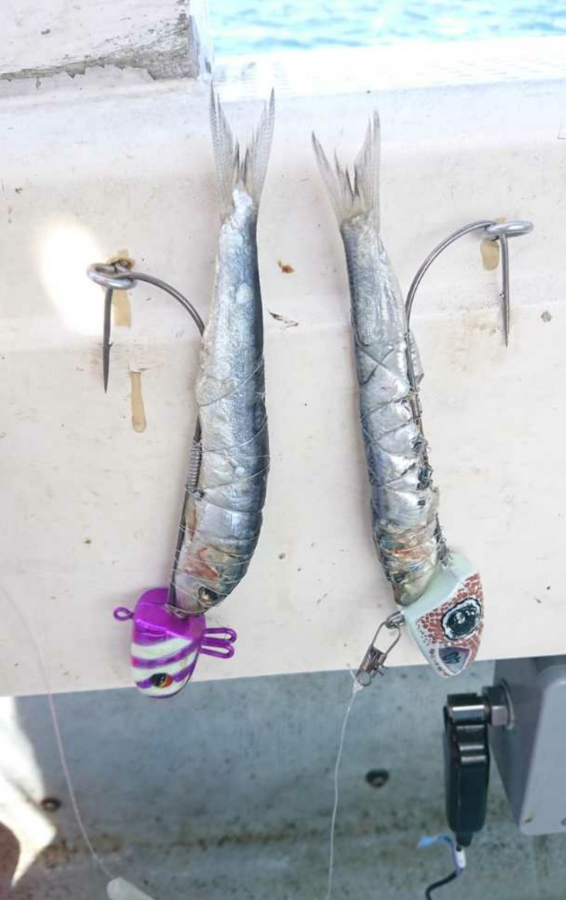 5時半頃出船、40分ほどポイントまで走り早速水深約75mほどのところで開始。