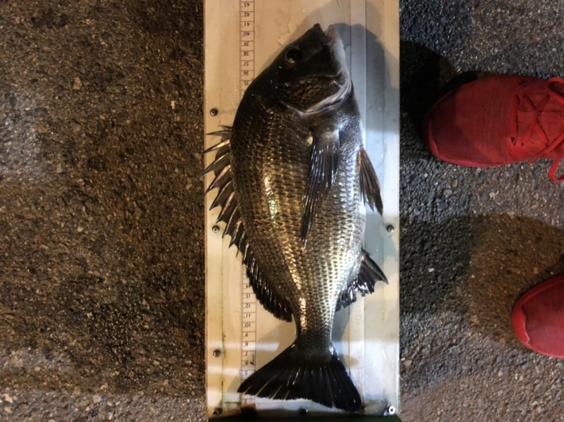 上がってきたのは40センチのチヌ!