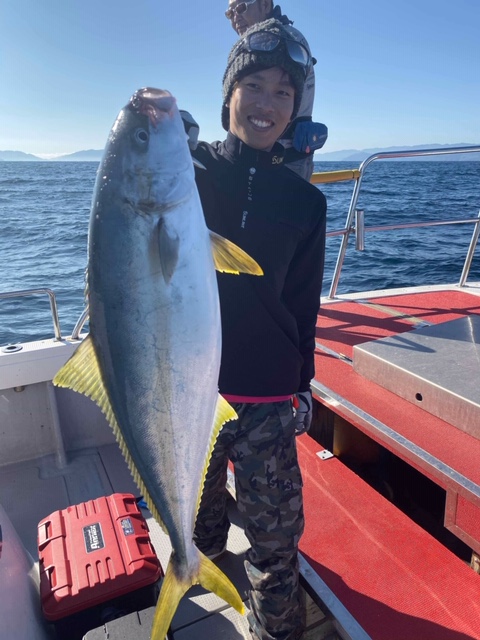 昼過ぎにはハマチの入れ食い状態となり、クーラーはパンパンに。