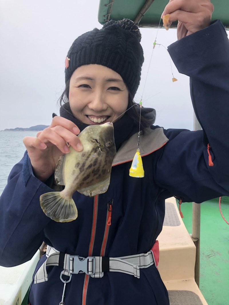 今年の初釣りで三邦丸さんにお世話になり、カワハギ釣りに行って来ました!初めてのカワハギ釣りでドキドキです。深さは25メートル前後でした。エサはアサリとイカの切り身を使い、交互につけて挑戦。底につけた瞬間小さいアタリはありますが、かけようと合わせても全くかかりません。しばらくエサを取られるだけの状態が続きました。しかもベラが多く、かかってもベラばかり…。船長曰く、水温が下がってしまいカワハギの活性が低いので今の時期は難しいそうです。めげずに誘っているとようやく1匹ゲット。型は小ぶりでしが、今年初の魚です!すると周りのお客様達もポロポロとヒット。中には30センチ以上の大物も混じっていたり、アオイソメをつけた方はガシラ、ホウボウも釣れていました。結果的に1人1匹ずつしかカワハギはゲットできませんでした…。カワハギ釣りの難しさも身をもって体験し、また奥深いと改めて感じました!今年はまた秋頃にリベンジしたいです!