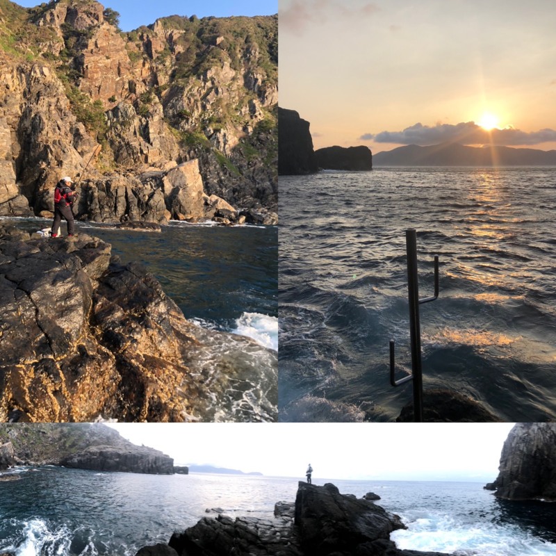 始めて高知の沖ノ島へ釣行しました!今回は髙見渡船さんを利用しますが荒天予報な感じの予報だからか全船で自分たち3名のみのようでした。宿毛市片島港を磯割の姫島を目指します!やはり風が強烈で出来る磯も少なく船長のオススメで3名で『ようちえん』に渡礁しました。一時期は尾長釣れた有名磯で風裏で楽に釣りが出来るとあり一安心、早速仕掛け作りをしていると釣友が何か連れた合図!見に行くとなんとコバンザメ!こいつは不吉な予感が(汗)。『絶対にサメ居るやん...。』するともう一人の釣友が叫んでおり見に行くとタモの柄が折れて先が無い!聞くとイスズミが釣れてタモ入れしてると下から大型のサメがタモ網に食いついて折れたとの話!