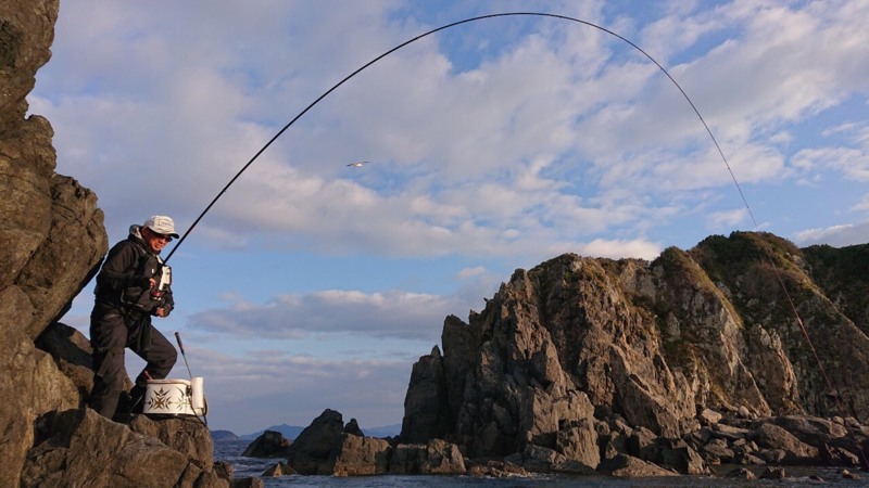 口を使ってくれるのでここから大物に備え3号ハリスにチェンジしますが大型がまだ見えるのに同型の尾長グレが先に食ってきて大型に食わせられません。それでも何度かくわせて強烈な魚の手ごたえもありますが浮かす前にチモトや根ズレでやられてしまいました...。1時間ほどすると次第に潮が逆に流れだすと尾長グレの姿は消え良型のイサギが釣れだしゴールデンタイムが終了。その後、弁当を食べて後半戦開始!時々イサギが釣れますがグレの反応はありませんでしたが潮が少し変わり始め前向きに流れる感じに。釣友の矢野さんに『潮が変わってきたよ!』と声を掛けて少しすると釣友の竿が大きく曲がり尾長グレらしい強烈な引き!何度かの抵抗もかわして浮いてきたのは52㎝の尾長グレ!『やった!良型や』60㎝には遠く及びませんが納得サイズに大喜び!次はこっちにも来るかと期待しましたがまた潮が右に流れだしてイサギです。一瞬のチャンスをものにした矢野さん流石です!