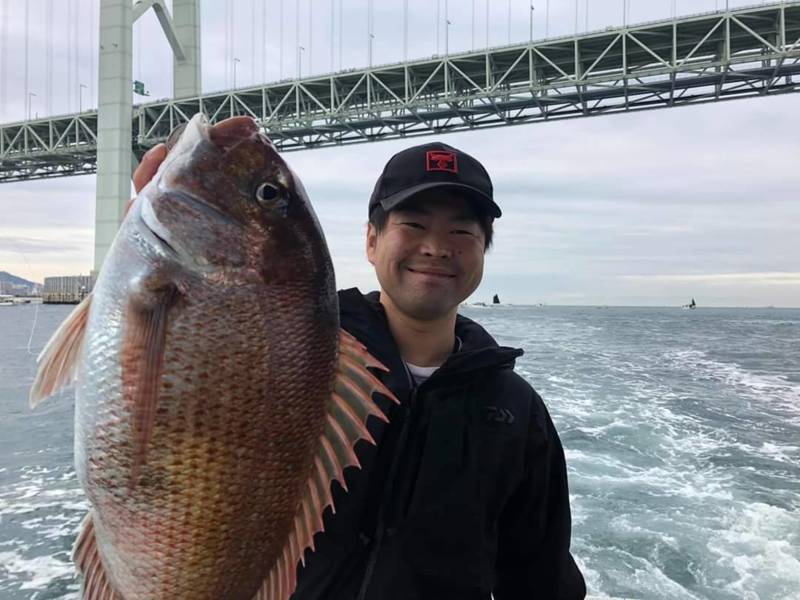 朝から明石海峡大橋の西側のポイントで早々に50cmの乗っ込みマダイGET!