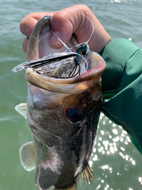 南湖東岸エリアの3~3.5メートル前後のウィードフラットで春の琵琶湖らしいスイミングジグを巻いていくとプリスポーンの50センチ前後のグッドサイズが反応してくれました!