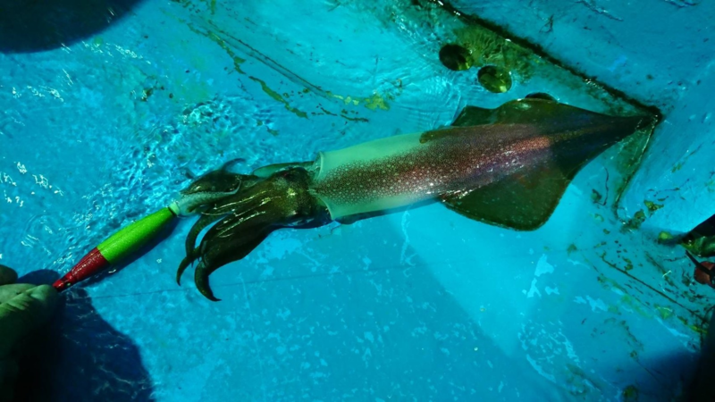 潮は速く30号のスッテは絶対!状況によっては40号、50号などのオモリが必要とのことでしたが当日は潮も比較的落ち着いており30号で大丈夫でした。