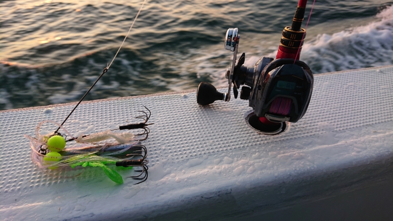 そしてタコもかわいいサイズがぽつぽつと続けて4匹!!友人と二人とも白に反応がある感じだったので白エギとワームで何とかでした。日が上がると・・・・・あれ?・・・どこ?きた!!貝殻!きた貝殻!!あれ?・・・