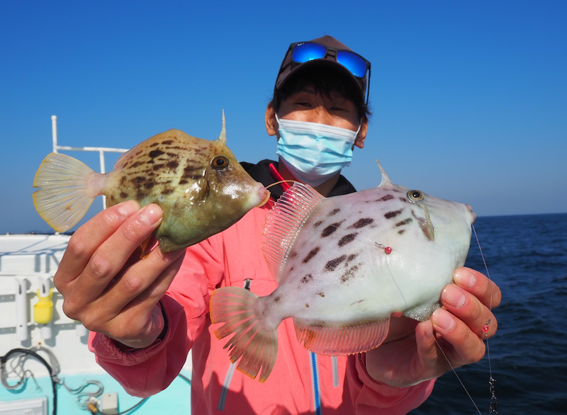 その後待望の本命がヒット!!!叩くようなカワハギらしい気持ちいいアタリでした!
