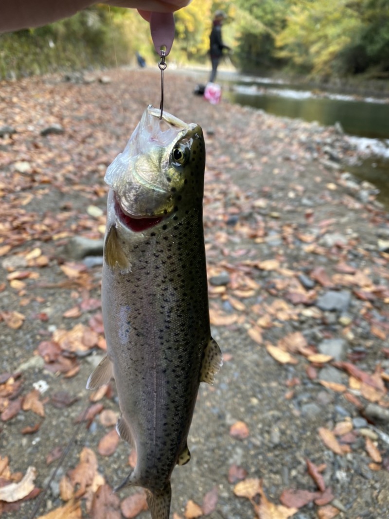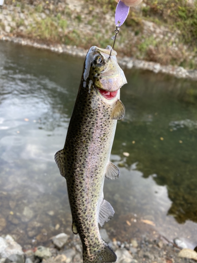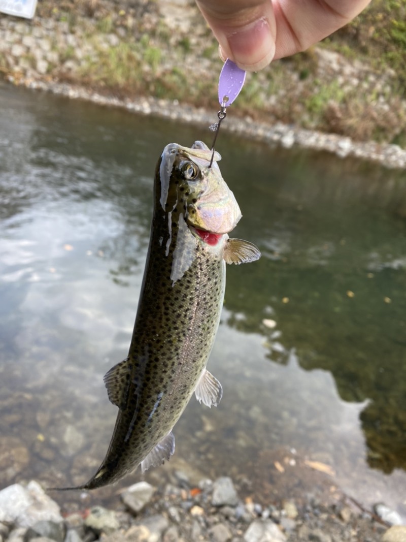 放流後はコンスタントにニジマスがよく釣れます!!50センチ程のニジマスがいますが、スプーンでは釣れず、反応もしないので、