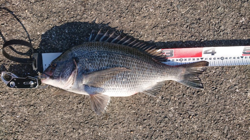 しっかり合わせて慎重にやり取りをして上がってきたのは、ナイス体型のチヌ!