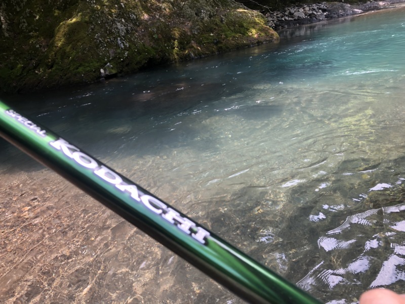今回使用した竿ですが、いつもは9mの竿しか振りませんが今回ははじめから支流狙いのつもりでしたので『シマノ スペシャル小太刀H275-80NR』を使用しました。張り出した樹の下でもストレス無く釣りが出来たので釣り残しを上手く拾うことが出来ました。H275は硬すぎるかと思いましたが通しにくいポイントもイヤイヤすることも少なくとても扱いやすく大きな河川でもおススメの1本ですよ!