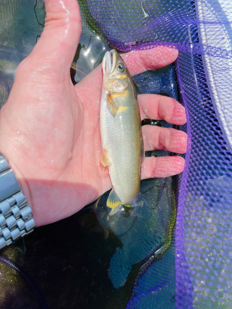 一か所で拾うように数匹釣ったものの下るも上るも出来ない状況なので昼以降は思い切ってダム下まで移動しました。